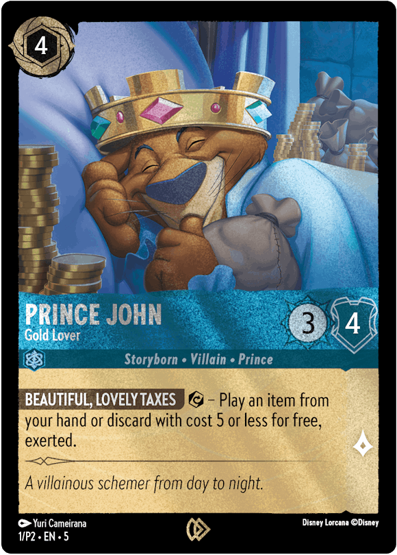 As announced on Lorecast, this August while supplies last, Disney Villainous: Introduction to Evil will include a foil promo card from Disney Lorcana TCG's Shimmering Skies set, with alternate art in Villainous' classic style.